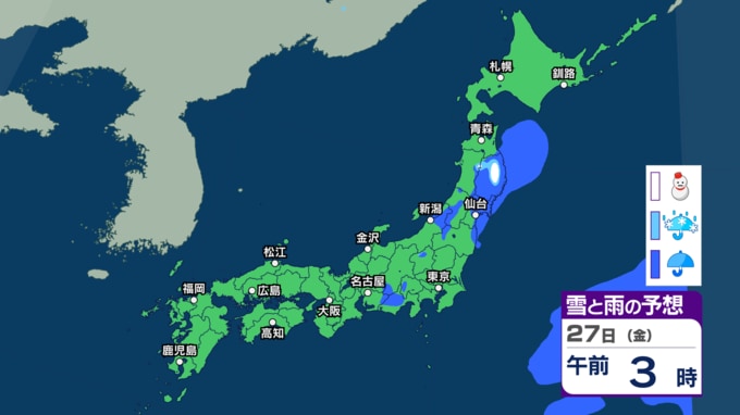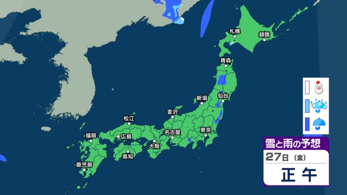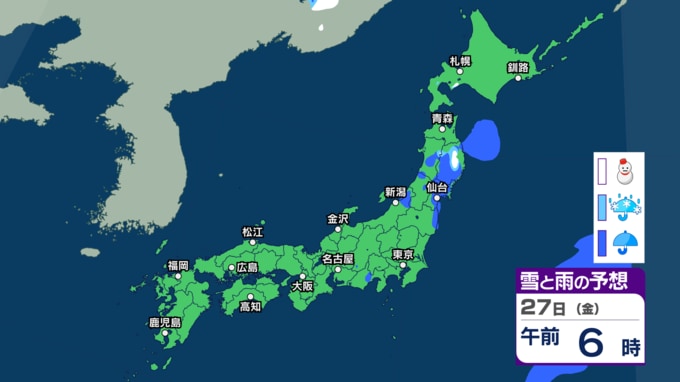きょう26日は関東や東北で雨に 来週30日(月)~31日(火)も低気圧通過で西日本~東日本の広い範囲で雨の予想【今後の雨・雪のシミュレーション・26日正午更新】 新潟放送 2026年3月26日(木) 12:05 27日(金)の雨と雪のシミュレーション