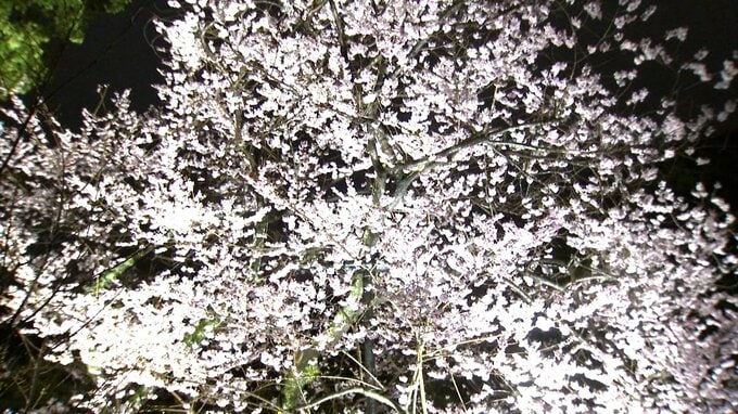 あす(27日)から春のライトアップが始まる高松市の栗林公園で昨夜(25日)、試験点灯が行われました。見ごろを迎えたエドヒガンやヒガンザクラをほのかに照らします。栗林公園、恒例の春のライトアップです。日に…