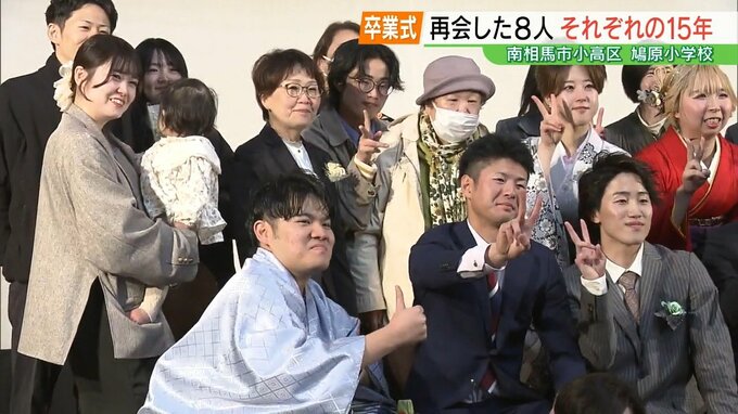 15年の時を経て、時計の針を進めることができた8人。それぞれの晴れやかな表情に、式に参加した人たちも15年の成長を感じ取っていました。