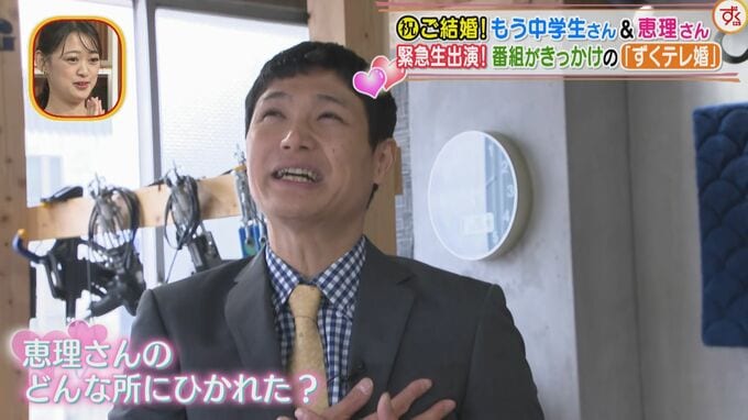 もう中学生さんは、「信じられないくらいドンスベリした日があって、そのようなことを恵理さんに伝えたら、励ましに来てくれた」と馴れ初めを明かしました。