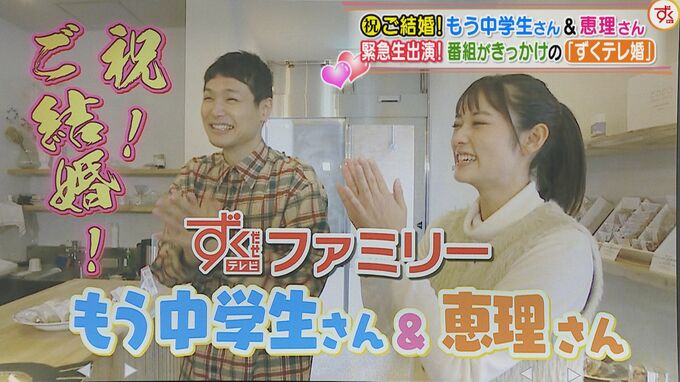 結婚を発表した長野市出身でお笑い芸人のもう中学生さんが26日、出会うきっかけとなった信越放送の「ずくだせテレビ」に生出演し、2人の馴れ初めについて明かしました。