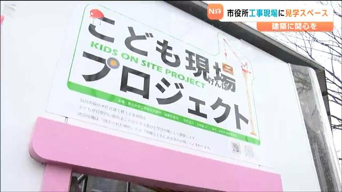 普段は見られない工事現場を子どもたちに見てもらおうと、東北大学は建て替えが進む仙台市役所の工事現場の隣に見学スペースを設けました。仙台市役所本庁舎の建て替え工事現場のすぐ隣りに設けられたスペース。中…