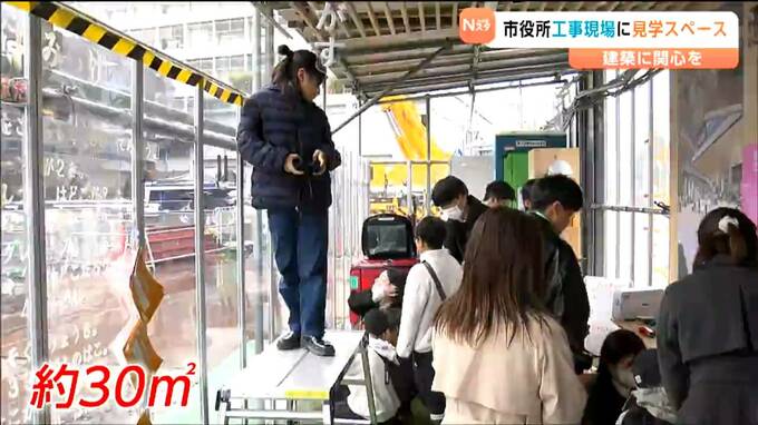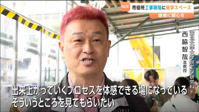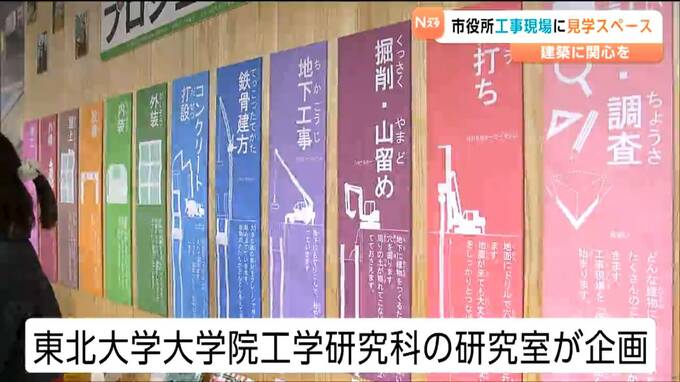 普段は見られない工事現場を子どもたちに見てもらおうと、東北大学は建て替えが進む仙台市役所の工事現場の隣に見学スペースを設けました。