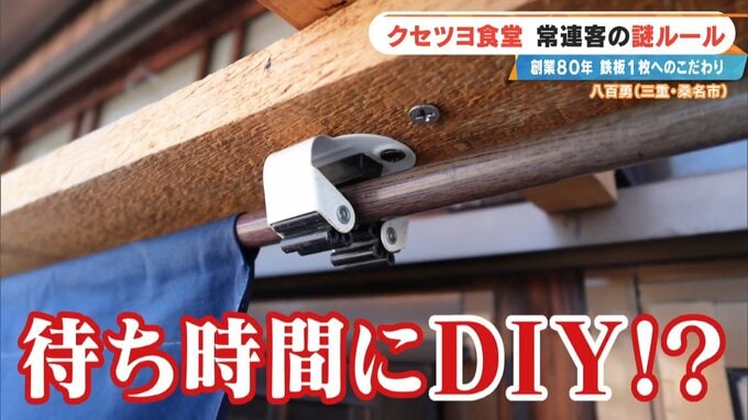 なんと、お好み焼きの待ち時間にお店の「のれん」を引っかける、アタッチメント付きの「のれん掛け」をDIYで作成。