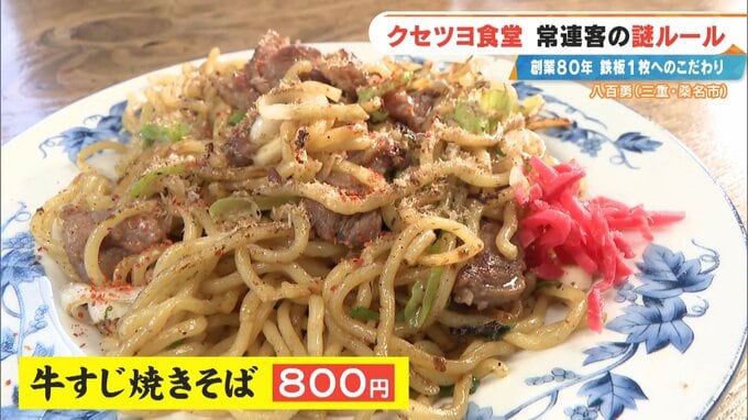 江里さん渾身の新メニューは、醤油の香ばしい香り漂う「牛すじ焼きそば」800円。