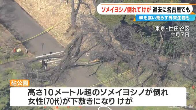 3月7日、東京都世田谷区の砧公園で、高さ10メートルを超えるソメイヨシノが倒れ、70代の女性が下敷きになり、けがをしました。