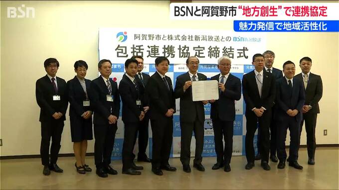 新潟県阿賀野市とBSN新潟放送が「地方創生に関する包括連携協定」を結びました。