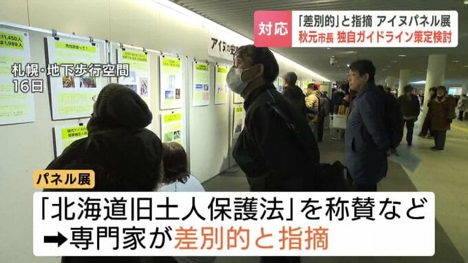 先週、札幌市で開かれたパネル展をめぐっては、アイヌ民族の同化政策として批判されている「北海道旧土人保護法」を称賛するなどしていて、専門家が差別的だと指摘しています。