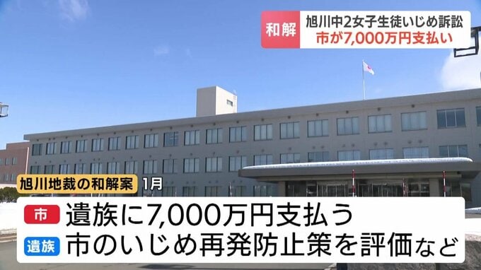 旭川地裁は、1月に市が遺族に7000万円を支払い、遺族はいじめの再発防止に向けた市の取り組みを評価することなどを盛り込んだ和解案を提示していて、26日和解が成立しました。