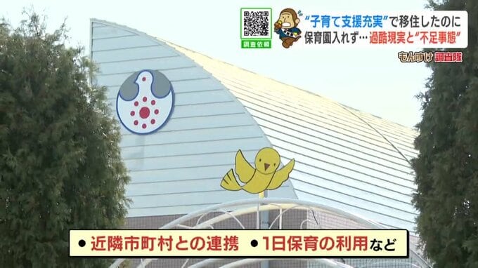 町は現在、近隣市町村との連携や一日保育などで対応しています。