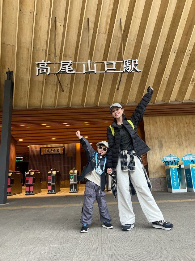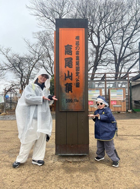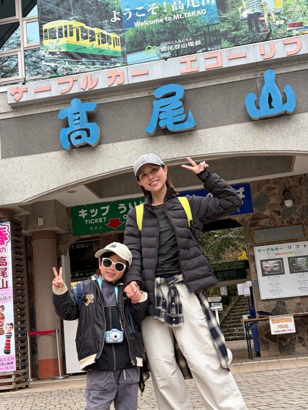 高尾山口の駅前で息子との2ショット画像を添えて、「50代一年生の私と 4月から小学一年生になるD♡boyとの記念であり祈念としての登山」と、母子2人での登山への思いを綴っています。