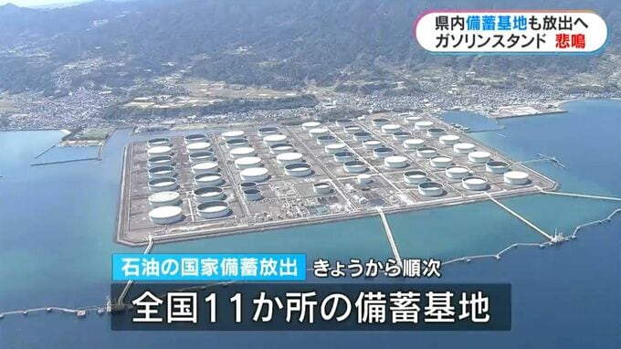 鹿児島県内では、あす27日からENEOS喜入基地で国内需要の3日から4日分、来月1日から志布志国家石油備蓄基地で4日から5日分を放出する予定です。
