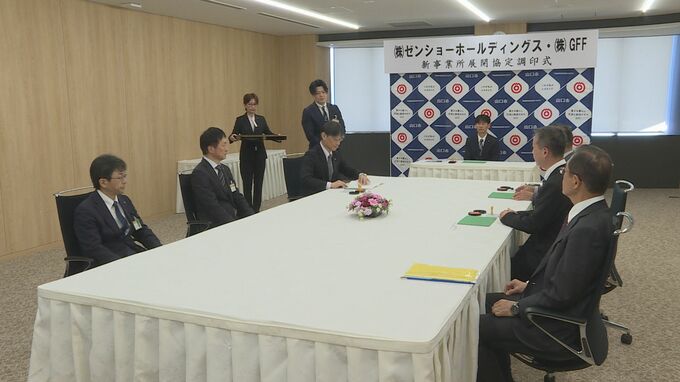 26日、山口市役所で調印式があり、伊藤和貴市長やゼンショーホールディングスの遠藤宏之常務らが協定書を交わしました。
