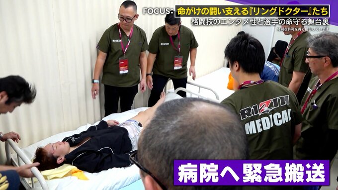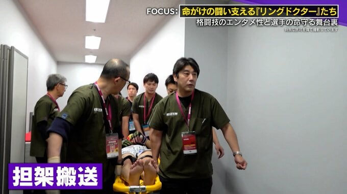 朦朧とする朝倉選手をドクター総動員で担架搬送!医務室へ…