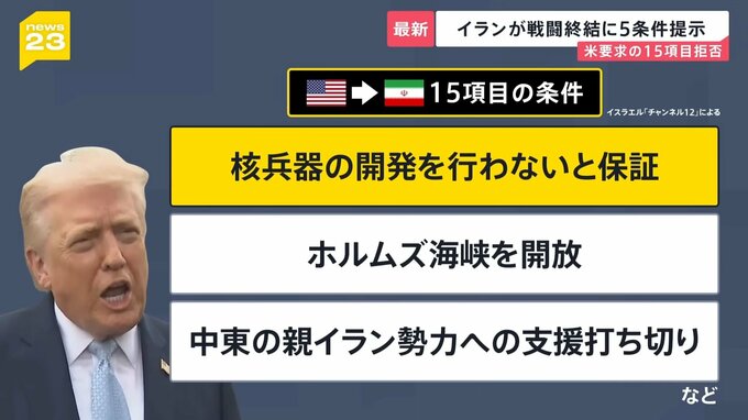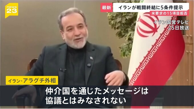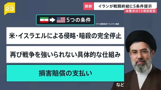 イランが戦闘終結に5条件提示 米要求の15項目拒否