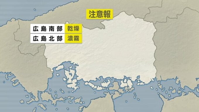 けさ27日(金)の広島県内は、沿岸部では冷え込みそれほどありませんでしたが、北部や内陸部では冷え込みが強まりました。最低気温は、広島市中区で8.5℃ 呉9.8℃ 三次3.2℃ 高野-1.8℃などを記録しています。北部には濃霧注意報が発表されています。車の運転にはご注意ください。