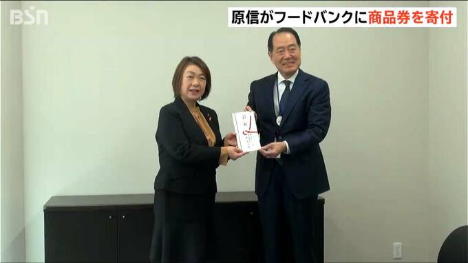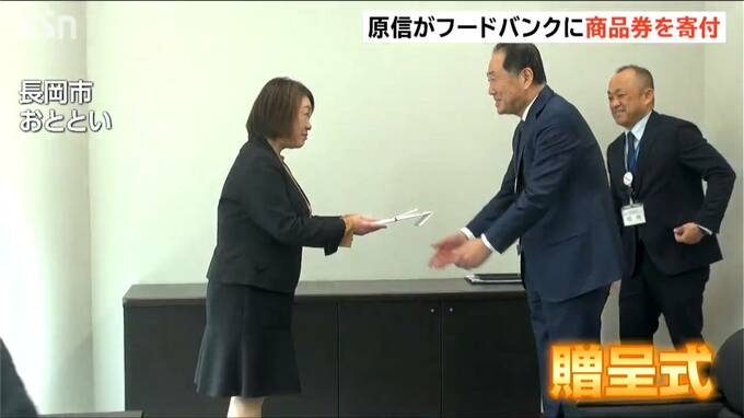 原信は県内でおよそ60店舗のスーパーを展開。地域の人々への販売だけではなく生活支援にも貢献したいと、今回、フードバンクへ100万円相当の原信商品券の寄付を決めたということです。