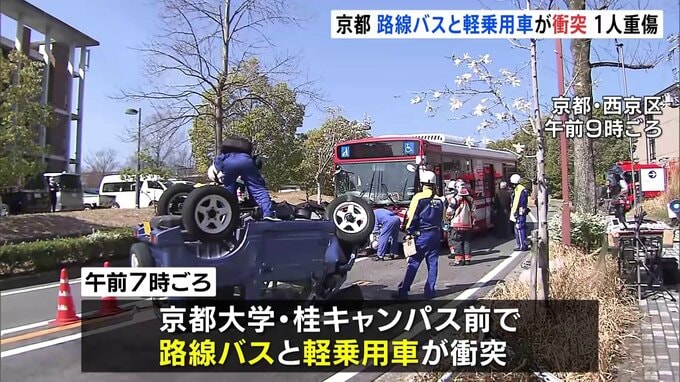 午前7時ごろ、京都市西京区の京都大学・桂キャンパスの前で、路線バスと軽乗用車が衝突しました。この事故で、軽乗用車を運転していた20代の男性が下あごを打って出血するなどして重傷。バスの運転手(50代)も腰…