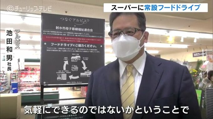 アルビスでは、2020年から定期的に期間限定のフードドライブを行っていて、今回、富山県内の店舗で初めて常設でボックスを置くことにしました。