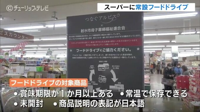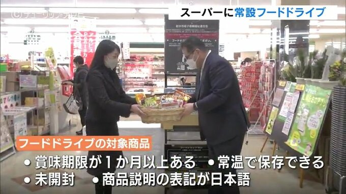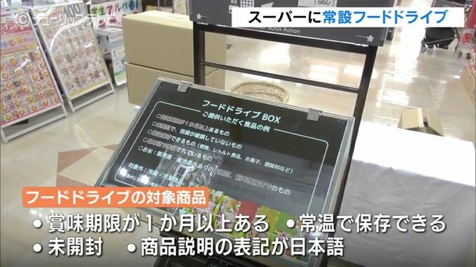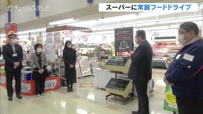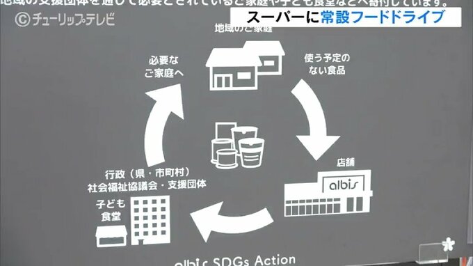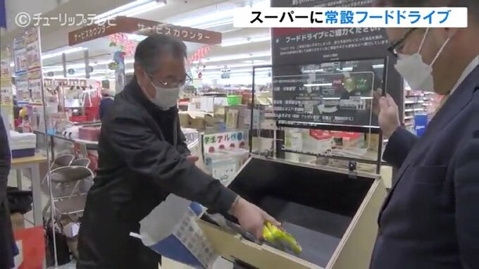 食品スーパーのアルビスは、家庭内で余った食品を回収し、必要な人に寄付する常設の「フードドライブ」を富山県内で初めて射水市内の店舗に設置、回収を始めました。