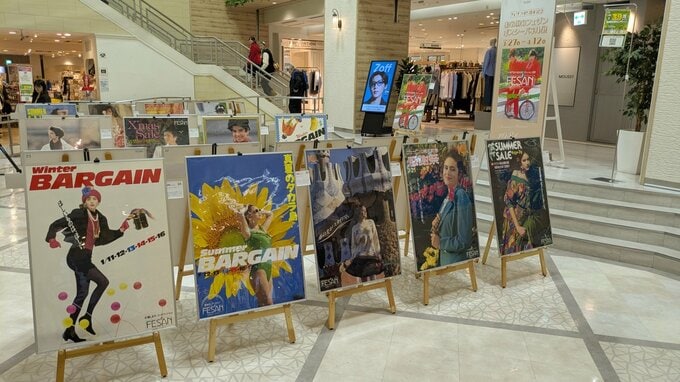 4月で開業45年を迎える盛岡駅ビルフェザンで、オープンからおよそ10年の間に製作されたポスターの展示が行われています。