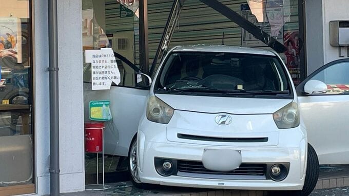 警察によりますと、乗用車は店舗前面のガラスを割って車体の後ろ半分ほどが突っ込んだ状態だということで、運転していた男性が運転操作を誤ったとみて調べています。