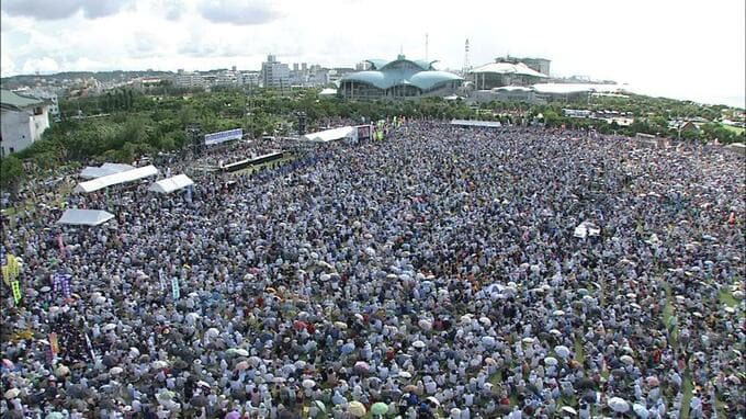沖縄戦における住民の集団自決に日本軍の強制、関与があったとする記述の削除・修正を求めた歴史教科書検定問題をはじめ、2007年からのわずか5年間で10万人規模の県民大会が3度開催されるなど、国に対する県民の怒りが、時代の潮流となっていました。
