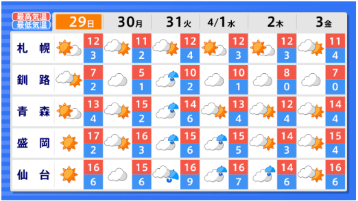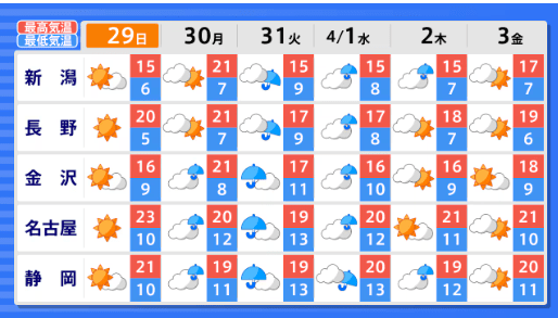 【2週間気温予報】北・東日本の向こう2週間の気温は高く、かなり高い日が多い予報 農作物の管理などに注意 全国の天気を画像で 気象庁 テレビユー山形 2026年3月27日(金) 16:58 国内 ■全国の天気を地方ごとに(画像) 画像はTBS NEWS DIG Powered by JNNより 画像ありの記事を最初から https://newsdig.tbs.co.jp/articles/-/2559921?display=1