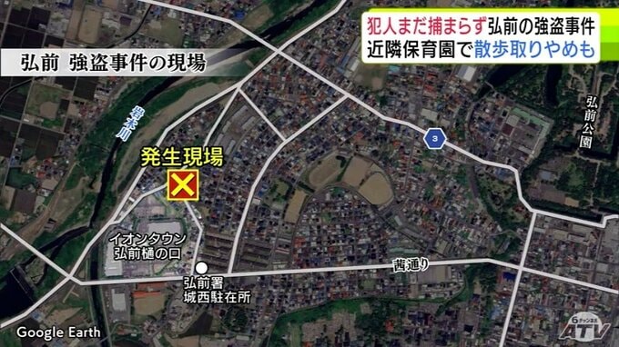 現場は、樋の口にある大型商業施設北側の住宅街の一角で、犯人は岩木川方面へ逃走したということです。