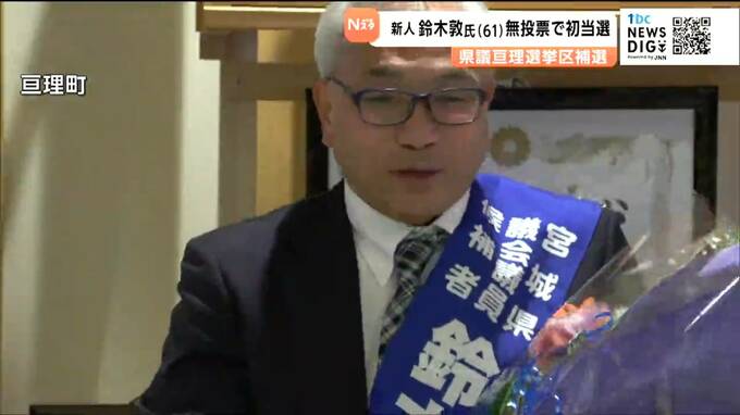 飲酒運転を理由とした議員の辞職に伴う県議会亘理選挙区の補欠選挙が3月27日、告示され、新人の鈴木敦氏が無投票で初当選を果たしました。県議会亘理選挙区の補欠選挙は3月27日午後5時に立候補の受け付けが締め切…
