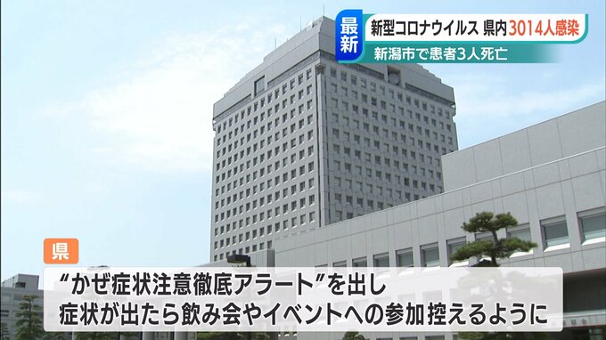 新潟県では医療の負担を避けるため、人の往来が増える年末年始に向けて新潟県独自の『かぜ症状注意徹底アラート ~症状出たら 家、出るな~』を出していて、かぜ症状が出たら飲み会やイベントへの参加を控えるように呼びかけています。