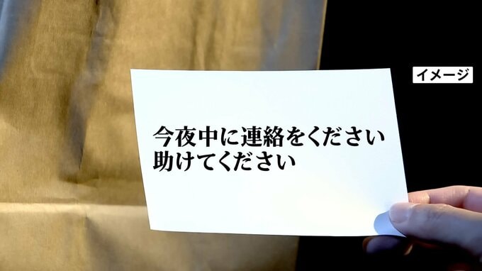 「玄関に紙袋が置かれていました。彼からのメッセージカードとプレゼント(ポケモンカード)が入っていて『今夜中に連絡をください。助けてください』と書いてありました」