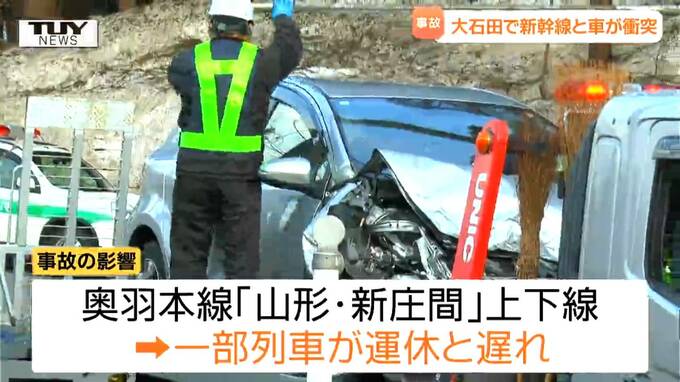 きょう午後、山形県大石田町の踏切内で、山形新幹線の回送列車と乗用車が衝突する事故がありました。 この事故によるけが人はいないということです。警察や消防などによりますと、きょう午後3時すぎ、大…
