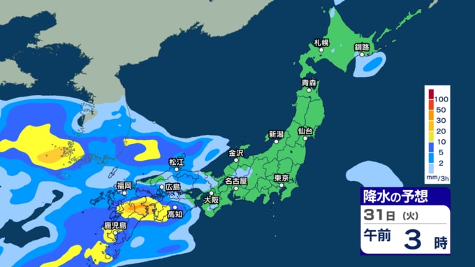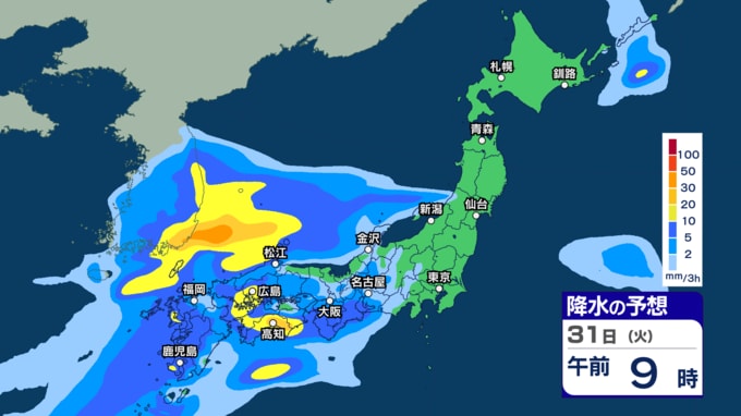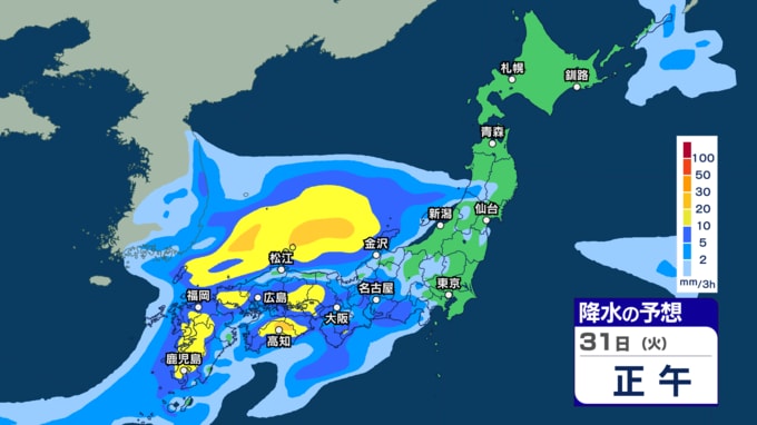 あす28日は各地で急な強い雨などに注意 週明け30日(月)からは西日本や東日本で大雨か 「警報級の大雨」の恐れも【28日~4月1日の雨シミュレーション・27日午後9時更新】 新潟放送 2026年3月27日(金) 21:00 31日(火)の雨のシミュレーション