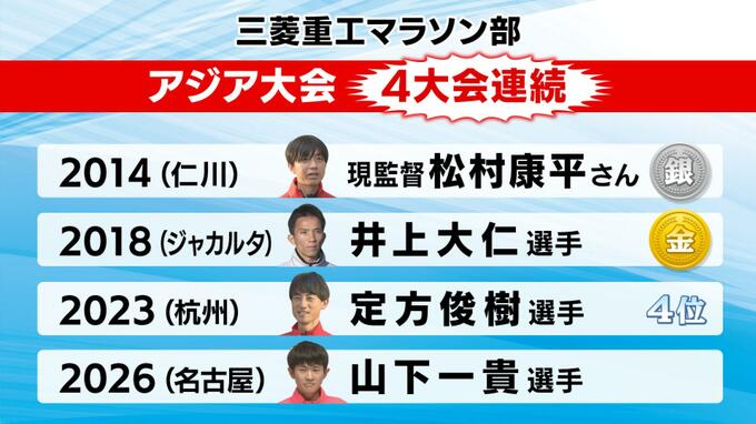 山下選手のアジア大会代表内定が決まりました。三菱重工からは4大会連続での代表選手輩出となっています。