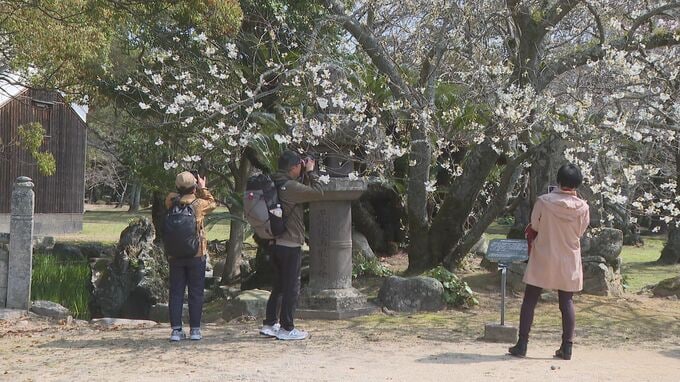 全国でも山口県萩市以外では確認されていない珍しいサクラが見頃を迎えています。