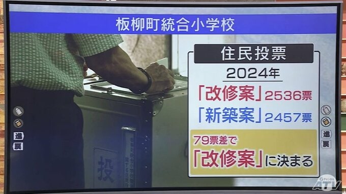 そもそも、2024年に「改修案」か「新築案」かで意見が分かれ、町が住民投票を行いました。その結果、79票差という僅差で「改修案」の支持が「新築案」を上回り、町は「改修案」に向け事業を進めてきました。