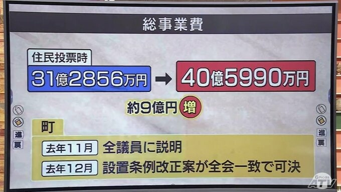 ただ、人件費や資材費の高騰で総事業費は、住民投票時は31億円余りだったのが、40億5000万円余りに膨らみました。