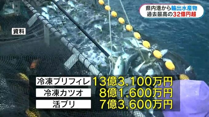 去年、県内の港から輸出された水産物の輸出額が過去最高となる32億円を超えたことが分かりました。