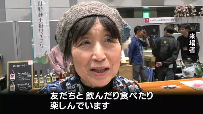 全国各地のワインを楽しむことができるイベントが岡山市北区で開かれています。