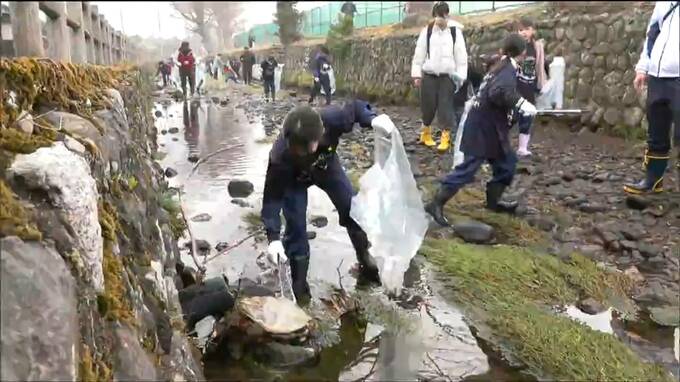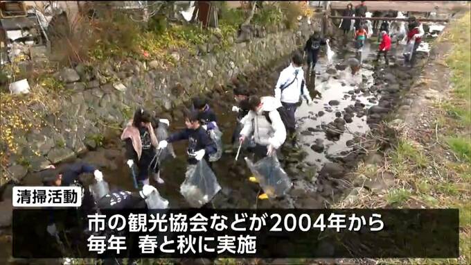 白石城の外堀にあたる沢端川で行われた清掃活動には、市民らおよそ250人がボランティアで参加しました。この活動は、市の観光協会などが2004年から毎年、春と秋の観光シーズンに合わせて行っています。