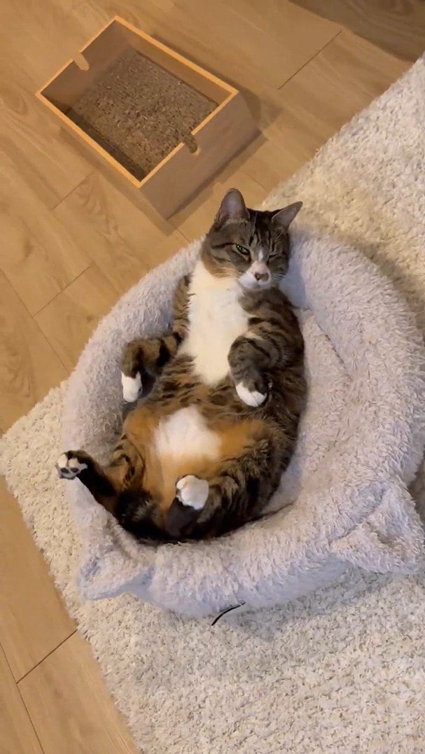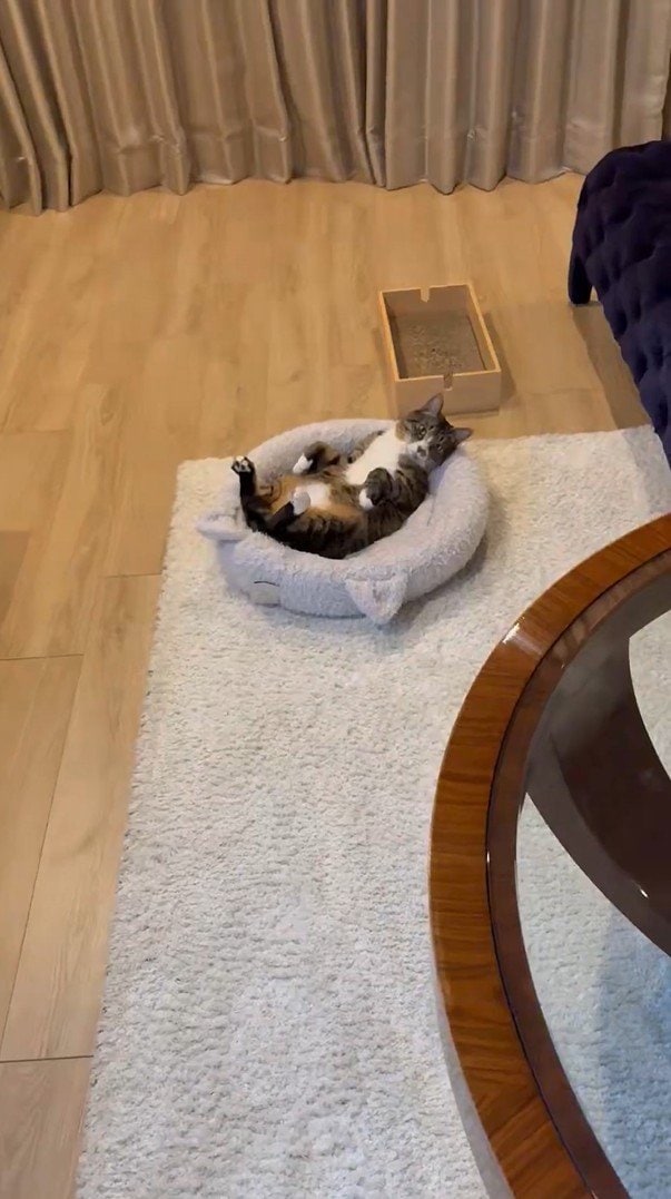 歌手の藤あや子さんが自身のXに、昨年保護した猫の「じゃこ天」が寛ぐ姿を投稿しています。