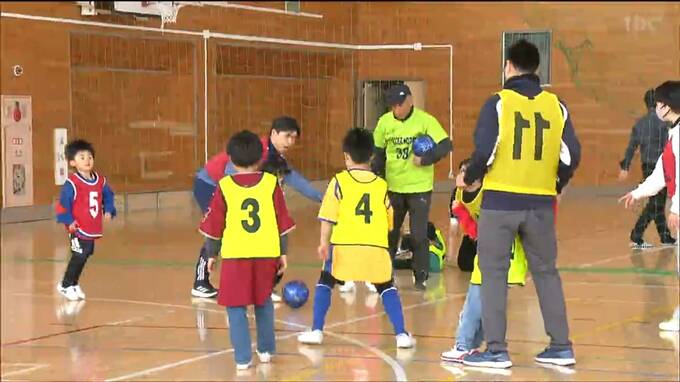 利府中学校の体育館で開かれた「ウォーキングフットボール」の体験会には1歳から76歳までのおよそ30人が参加しました。ウォーキングフットボールはその名の通り歩いてプレーするサッカーで、ヘディングや選手同士の接触なども禁止されています。