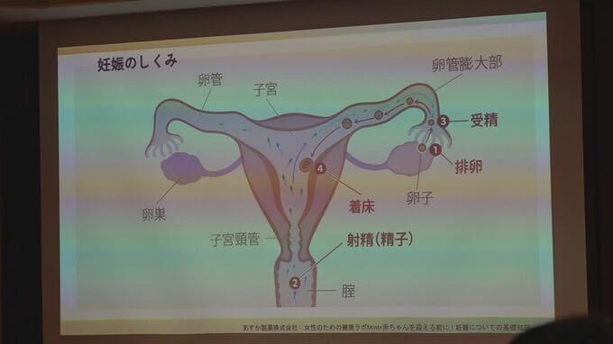 会場には20代から30代の社会人約20人が集まり、石川県立看護大学で講師をしている桶作梢さんが妊娠や月経のしくみ、心身のケアの大切さについて講演しました。