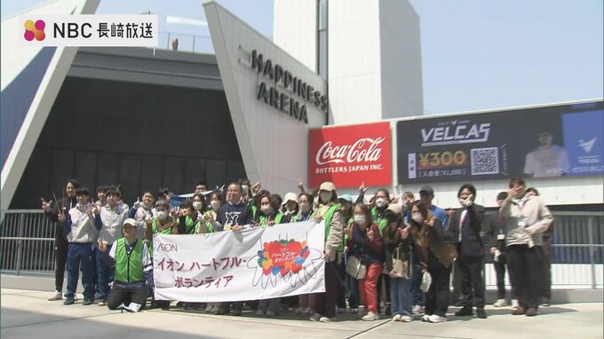 長崎ヴェルカのホームゲームの前に、3月28日、イオン九州などが、長崎スタジアムシティ周辺の清掃活動を行いました。