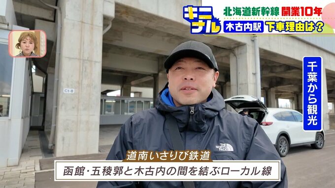 「いさりび鉄道に乗って函館に行きたいと思って(乗り換えの)木古内で降りました、まだ時間がありますよね、(それまで)道の駅とかありましたよね」