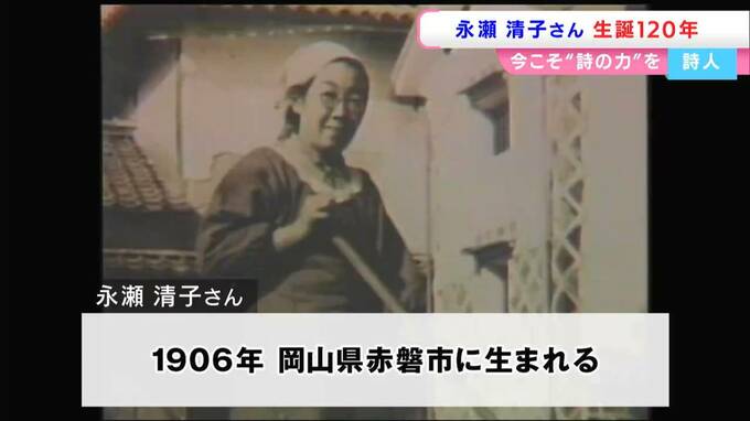 永瀬清子さんは、1906年、現在の赤磐市に生まれ、金沢や東京などで過ごした後、ふるさとに戻り、農業や家事、育児に従事しながら、89歳で亡くなるまで詩を書き続けました。