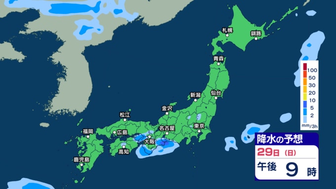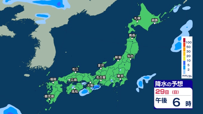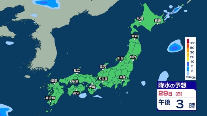 きょう29日は沖縄 あす30日から31日は西~東日本で激しい雨の恐れ 今週は雨強まり「警報級大雨」となる恐れも【29日~4月3日午後3時の雨シミュレーション・29日午前11時更新】 新潟放送 2026年3月29日(日) 11:00 29日(日)の雨のシミュレーション(3時間ごと)