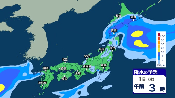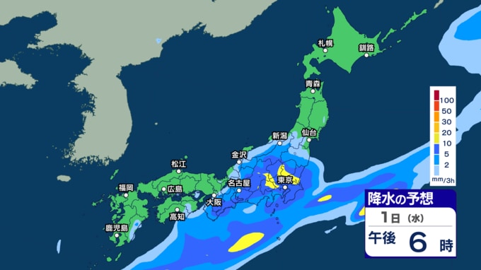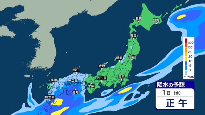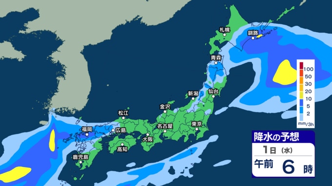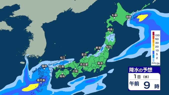 きょう29日は沖縄 あす30日から31日は西~東日本で激しい雨の恐れ 今週は雨強まり「警報級大雨」となる恐れも【29日~4月3日午後3時の雨シミュレーション・29日午前11時更新】 新潟放送 2026年3月29日(日) 11:00 4月1日(水)の雨のシミュレーション(3時間ごと)