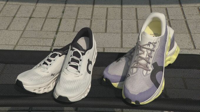 「On」はスイスのメーカーが開発し高いクッション性が特徴で、訪れた人が最新モデルの履き心地を体験しました。
